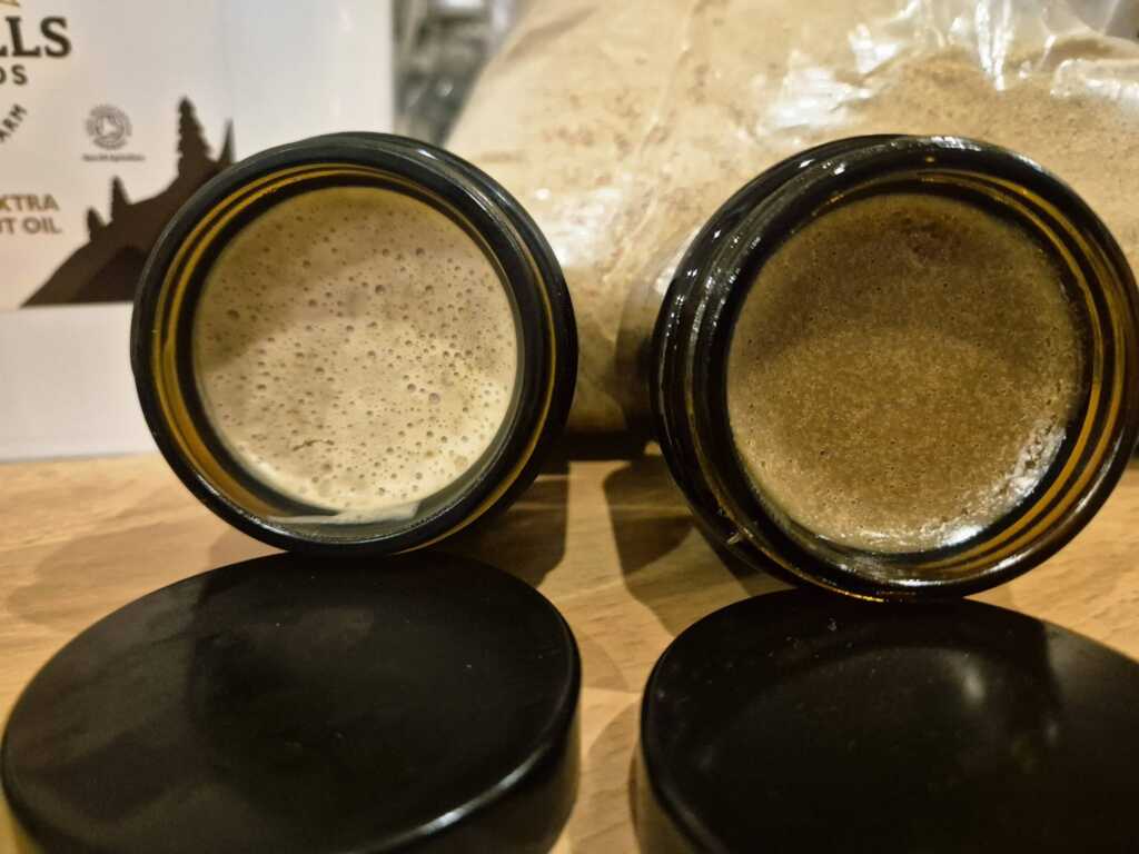 Dzięki zastosowaniu bezpiecznego konserwantu (DHA BA), faza wodna (srebro, złoto, kwas hialuronowy) pozostaje stabilna i aktywna, co jest rzadkością w domowych produktach z Muchomora. Dodatek witamin A i E dodatkowo wzmacnia działanie pielęgnacyjne bazy tłuszczowej.